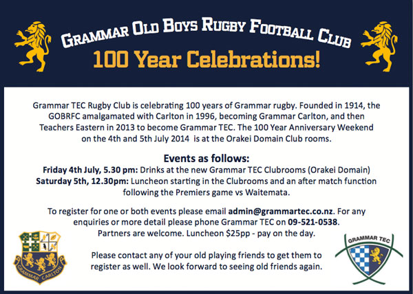 If you can make this one, it will be greatly appreciated. You will be supporting a great cause. After the lunch, our clubrooms will be open for our members, and the Rugby Foundation patrons including some VIPs.